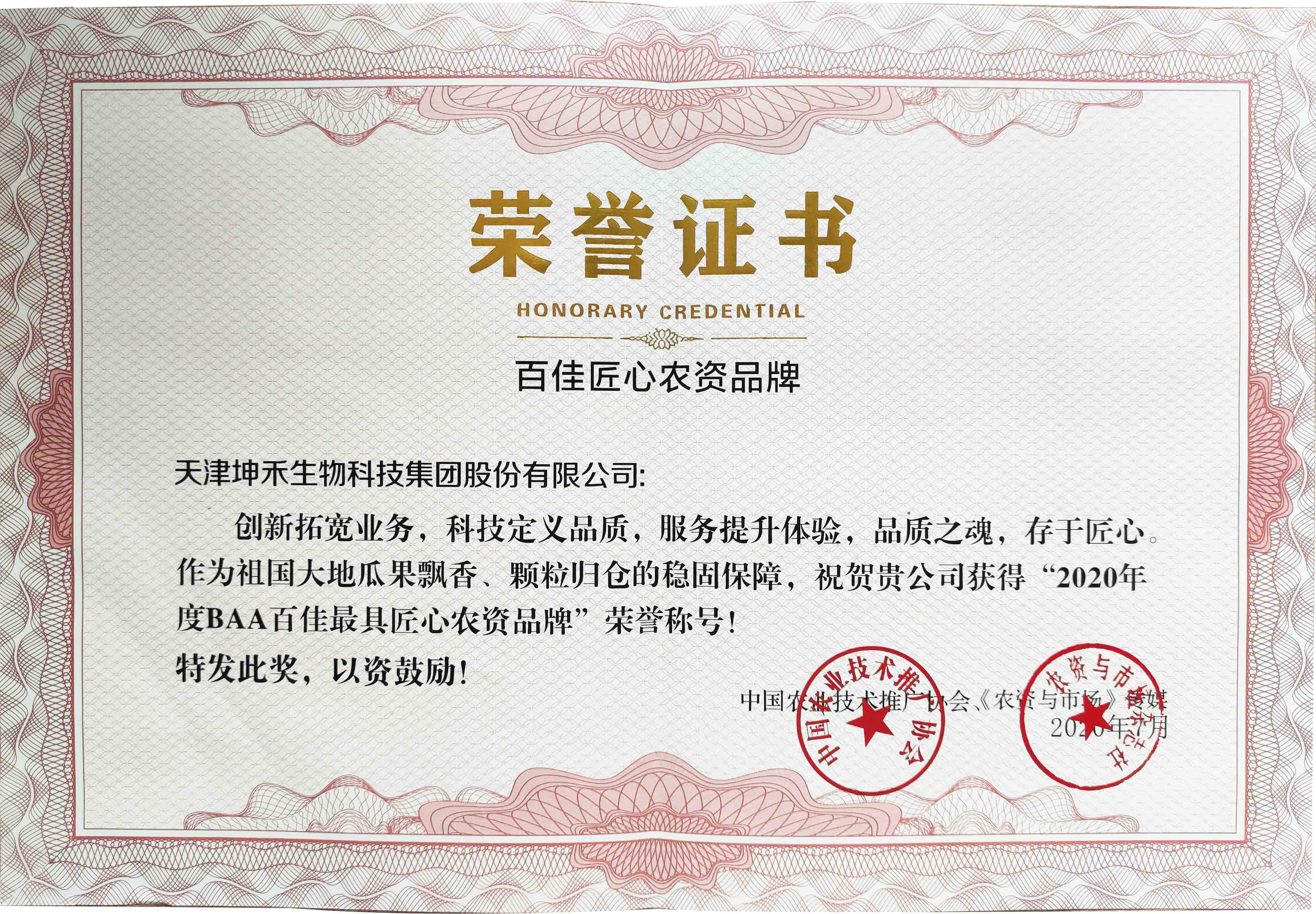 • 坤禾榮譽